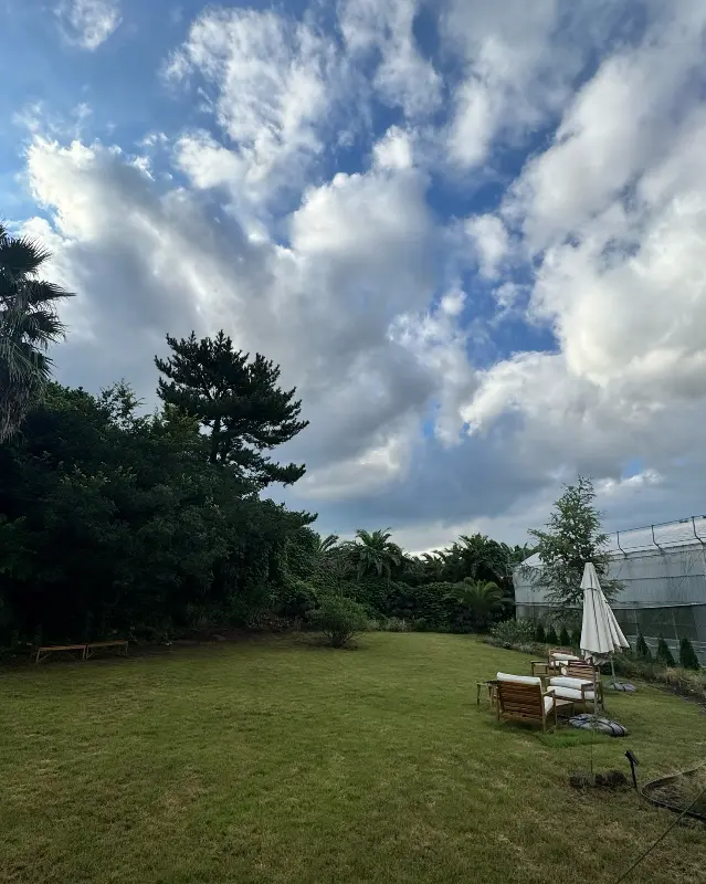 통창 너머로 펼쳐지는 정원 뷰는 그야말로 압권이었다. 푸른 잔디밭과 울창한 나무들은 마치 한 폭의 그림 같았다. 특히 인상적이었던 것은 정원 한쪽에 자리 잡은 온실이었다. 다양한 종류의 식물들이 자라고 있는 온실은 마치 작은 식물원 같았다. 온실 내부의 온도는 외부보다 약간 높았고, 습도 또한 적절하게 유지되고 있었다. 광합성 작용이 활발하게 일어나는 덕분인지, 온실 안은 신선한 산소로 가득 차 있었다.