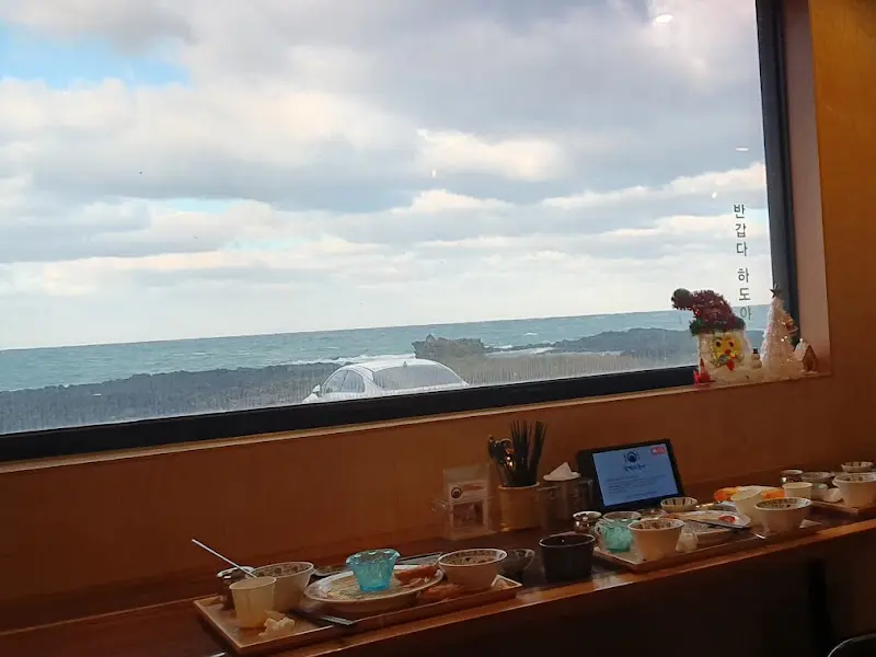 * 창가 자리에 앉으면 아름다운 하도 해변을 감상하며 식사를 즐길 수 있다.