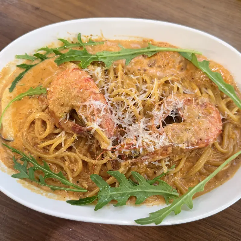 싱싱한 새우와 루꼴라, 치즈가 듬뿍 올라간 로제 파스타는 보기만 해도 군침이 돈다.