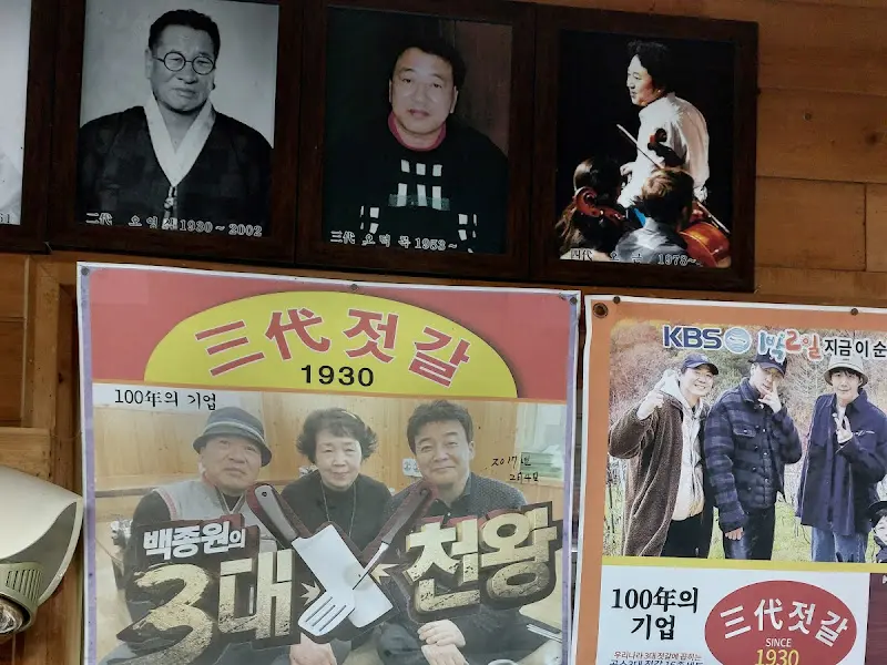 식당 문을 열고 들어서자, 마치 시간 여행을 떠나온 듯한 기분이 들었다. 세월의 흔적이 느껴지는 듯한, 정감 넘치는 분위기가 인상적이었다. 벽에는 오래된 사진들이 걸려 있었는데, 3대째 이어져 오는 젓갈 명가의 역사를 보여주는 듯했다. 백종원의 삼대천왕에 나왔던 사진과 1박 2일 멤버들의 방문 사진도 눈에 띄었다. 특히 ‘1박 2일’에서 김종민 씨가 멍게젓을 따로 사갔다는 문구가 적힌 포스터는 웃음을 자아냈다.