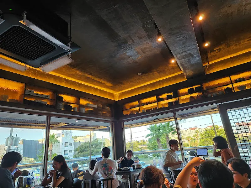 문을 열자 활기찬 기운이 온몸을 감쌌다. 1층은 싱싱한 횟감을 고르는 공간, 2층은 식사를 즐길 수 있는 공간으로 분리되어 있었다. 1층에서 주문을 마치고 2층으로 올라가는 계단, 묘하게 기대감을 자아내는 공간 구성이었다. 2층에 들어서자, 생각보다 넓지 않은 공간이 아늑하게 다가왔다. 다찌 자리와 테이블 몇 개가 전부였지만, 오히려 그 점이 북적거리는 대신 편안한 분위기를 선사했다. 은은한 조명이 테이블을 비추고, 창밖으로는 함덕 해변의 풍경이 한눈에 들어왔다.