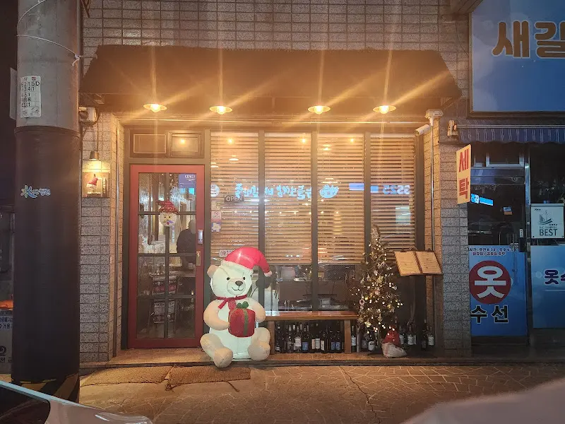 가게 앞에 도착했을 때, 아담하고 예쁜 외관이 가장 먼저 눈에 들어왔다. 따뜻한 조명이 비추는 창가에는 크리스마스 장식이 놓여 있었고, 귀여운 곰 인형이 손님을 맞이하고 있었다. 문을 열고 들어서자, 아늑하고 편안한 분위기가 온몸을 감쌌다. 은은하게 퍼지는 따뜻한 조명 아래, 나무 테이블과 의자가 정갈하게 놓여 있었고, 벽에는 아기자기한 소품들이 장식되어 있었다. 마치 작은 유럽의 어느 마을에 와 있는 듯한 느낌이었다. 가족 단위 손님들과 커플들이 삼삼오오 모여 앉아 즐거운 시간을 보내는 모습이 눈에 띄었다.