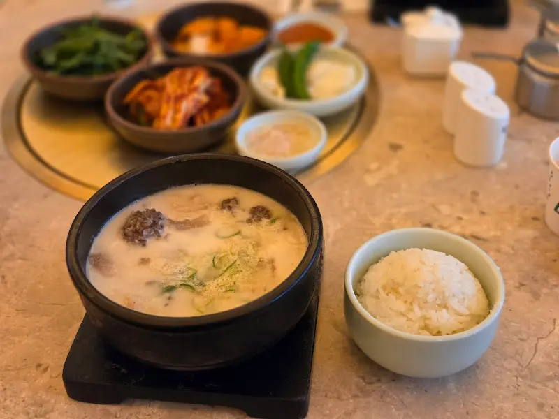 국물을 한 숟갈 떠서 입에 넣는 순간, 아이고, 이 맛 좀 봐라! 정말 진하고 깊은 맛이 입안 가득 퍼지는데, 이야, 이거 완전 내 스타일이야! 돼지 냄새는 하나도 안 나고, 마치 곰탕처럼 뽀얗고 부드러운 국물이 정말 일품이더라. 마치 오랜 시간 정성껏 끓인 사골 육수처럼 깊고 풍부한 맛이 느껴졌어.