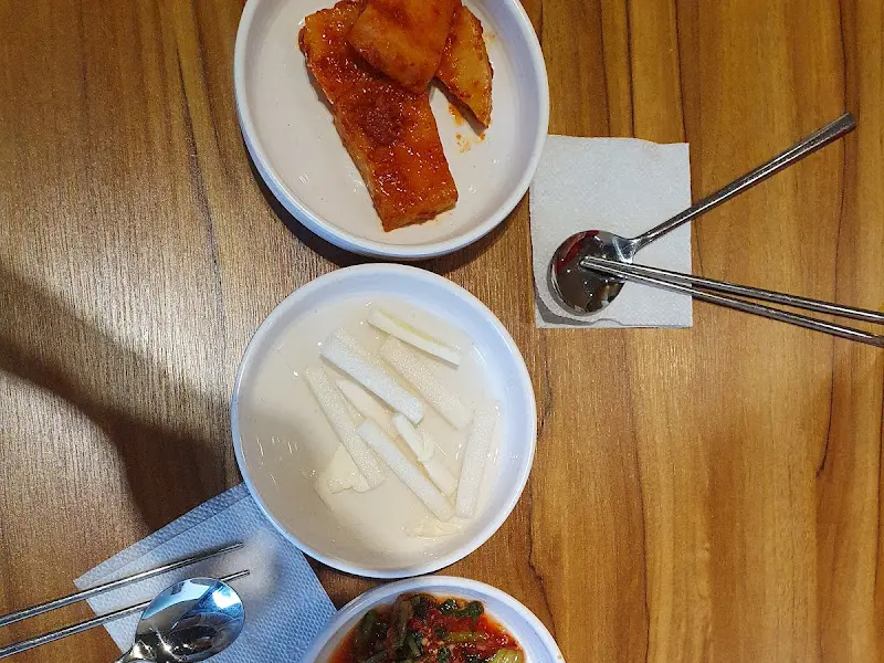 주문 후, 밑반찬이 빠르게 세팅되었습니다. 겉절이 김치, 깍두기, 고추, 양파 장아찌 등 정갈하게 담긴 반찬들이 마치 실험 도구처럼 제 앞에 놓였습니다. 와 을 참고하면, 반찬 하나하나에 얼마나 정성을 들였는지 알 수 있습니다. 특히 겉절이 김치는 신선한 배추의 아삭함과 매콤한 양념의 조화가 훌륭했습니다. 김치의 매운맛은 캡사이신 성분 때문인데, 이 성분은 TRPV1 수용체를 자극하여 통증과 함께 쾌감을 유발합니다. 마치 과학 실험에서 예상치 못한 결과를 얻었을 때의 희열과 비슷하죠.