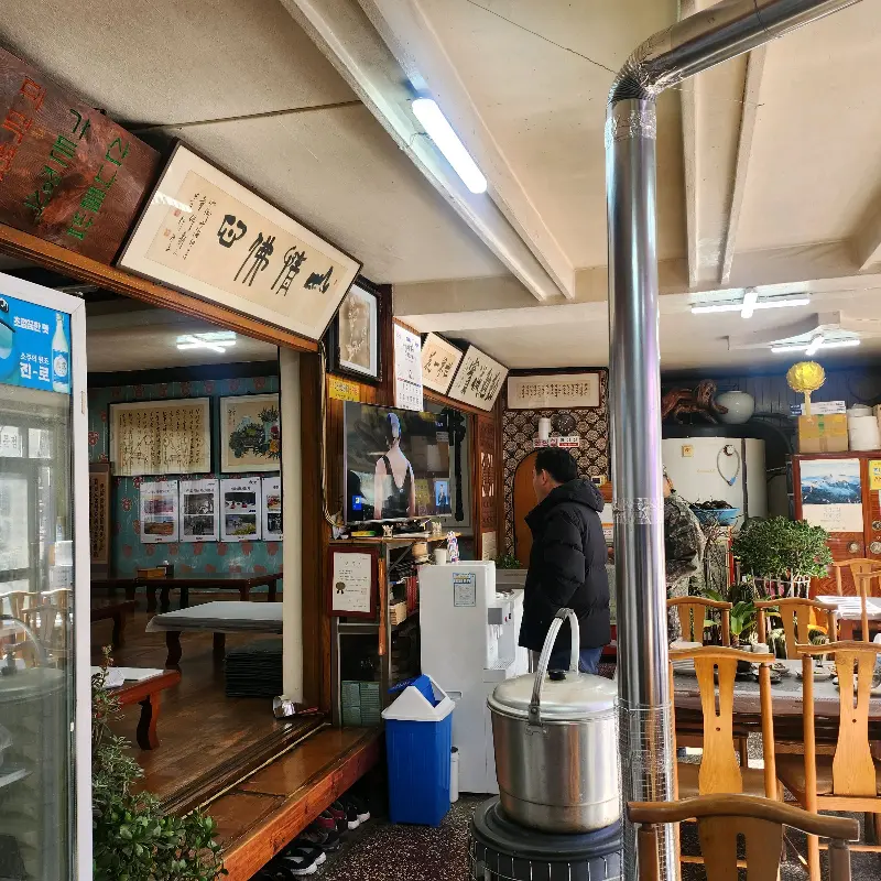 식당 안은 생각보다 넓었고, 테이블 간 간격도 넉넉해서 편안하게 식사를 즐길 수 있는 분위기였어. 벽 한쪽에는 사장님의 손길이 느껴지는 그림과 사진들이 걸려 있었는데, 마치 시골 할머니 댁에 놀러 온 듯한 푸근함이 느껴졌어. 에서 보이는 것처럼, 정겨운 분위기가 물씬 풍기는 곳이었지.