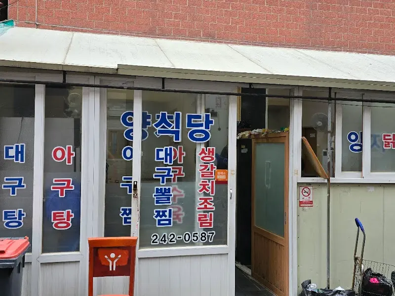 “맛집” 찾아 삼만 리, 드디어 도착한 양지식당. 간판부터가 범상치 않아. 낡은 벽돌 건물에 큼지막하게 박힌 ‘양지식당’ 네 글자, 폰트에서 느껴지는 연륜이랄까? 마치 힙합 Godfather의 묵직한 존재감 같잖아.