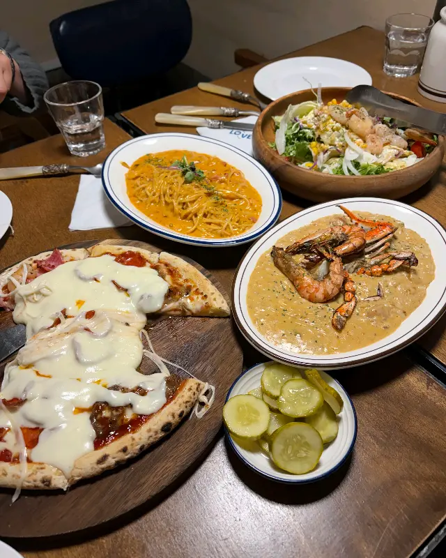 진짜 쉴 새 없이 먹었어. 너무 맛있어서 젓가락을 놓을 수가 없더라. 배가 터질 것 같은데도, 계속 입으로 들어가는 마법! 결국, 피자 한 조각이랑 샐러드 파스타 조금 남기고 싹 다 비웠지. (남긴 거 후회 중…)