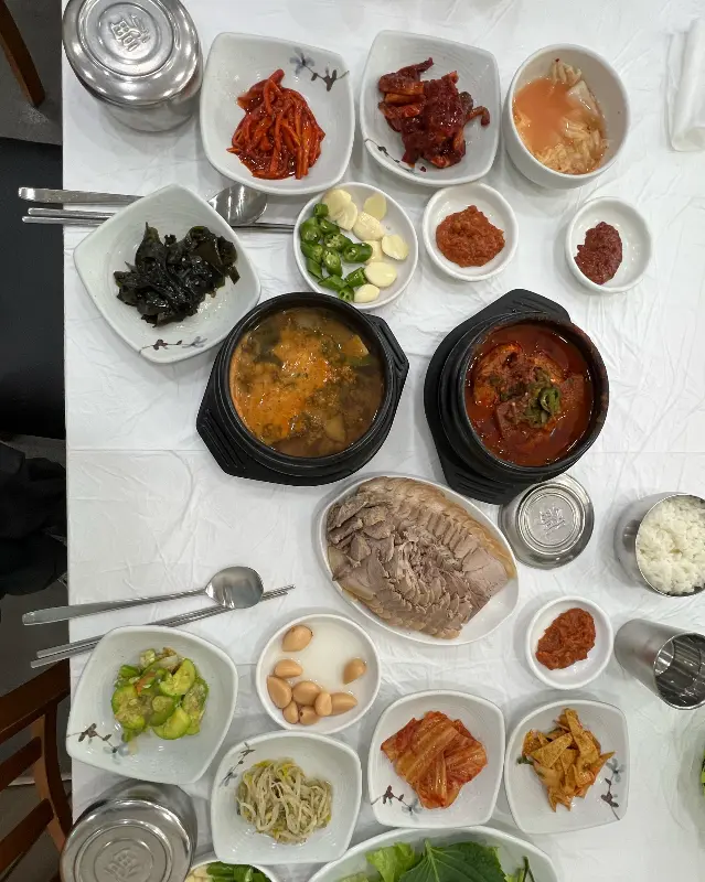 수육, 찌개, 조림, 쌈 채소, 밑반찬까지… 이 모든 것을 한 상에서 즐길 수 있다는 것이 놀라울 따름입니다.