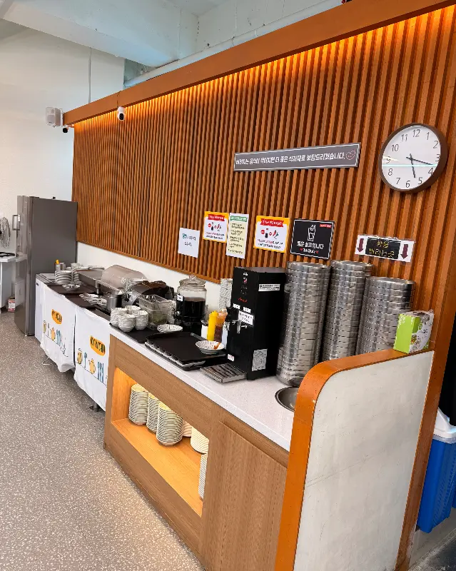 매장 문을 열고 들어서자마자, 넓고 쾌적한 공간이 눈에 확 들어왔어. 테이블 간 간격도 넉넉해서 편안하게 식사를 즐길 수 있겠더라. 우드톤의 따뜻한 인테리어 덕분에, 마음까지 차분해지는 느낌. 평일 점심시간인데도 손님들이 꽤 많았어. 역시 맛집은 맛집인가 봐. 가족 단위 손님들도 많이 보였는데, 아기의자까지 준비되어 있는 걸 보니, 아이와 함께 오기에도 딱 좋겠더라.