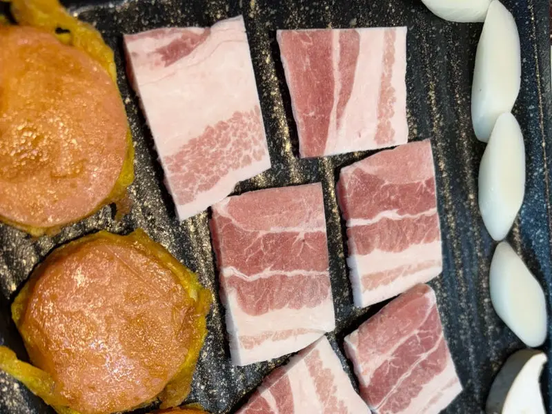 솔직히 밑반찬만으로도 밥 한 공기 뚝딱할 수 있을 것 같았다. 특히 갓김치는 진짜 예술이었다. 아삭아삭한 식감에, 매콤하면서도 깊은 맛이 일품이었다. 된장찌개랑 같이 먹으니, 진짜 환상의 조합이었다. 다른 테이블을 보니 삼겹살도 많이들 시켜 먹는 것 같았다. 다음에는 꼭 삼겹살에 도전해봐야겠다는 생각이 들었다. 옆 테이블에서 구워지는 삼겹살 냄새가 어찌나 맛있게 느껴지던지.