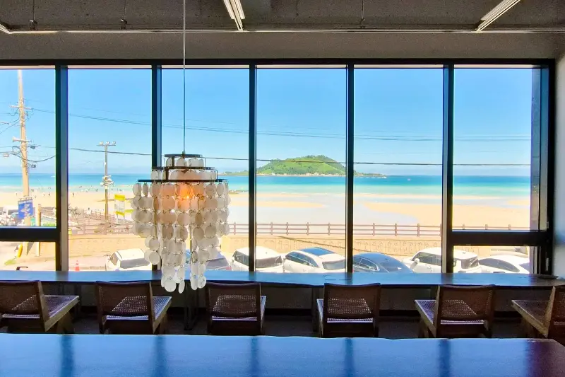카페 내부에서 보이는 협재 바다 풍경