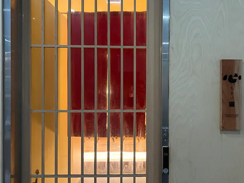 부산대 인근, 좁은 골목길을 따라 걷다 보니 마치 숨겨진 보석 같은 공간이 나타났다. 은은한 조명이 새어 나오는 나무색 외관이 눈에 띈다. 심플하면서도 세련된 느낌이랄까. 가게 문에 달린 격자무늬 창살 안쪽으로 붉은색 노렌(暖簾)이 살짝 보이는 모습이 일본 현지 식당에 온 듯한 착각을 불러일으켰다. 나무 간판에는 정갈한 글씨체로 ‘스시심 타카이’라고 적혀 있었다. 드디어 제대로 찾아왔구나!