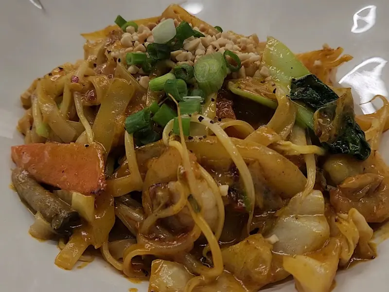 드디어 첫 입! 로제 소스의 부드러움과 팟타이 특유의 새콤달콤함이 환상적으로 어우러졌다. 로제 소스가 팟타이의 맛을 해치지 않으면서, 오히려 풍미를 더 깊게 만들어주는 느낌이었다. 면발은 어찌나 탱글탱글한지, 씹을 때마다 기분 좋은 탄력이 느껴졌다. 중간중간 씹히는 땅콩의 고소함과 쪽파의 향긋함도 맛을 더욱 풍성하게 만들어줬다. 팟타이 안에는 새우, 두부, 숙주 등 다양한 재료들이 아낌없이 들어가 있었다. 특히 새우는 어찌나 신선한지, 입안에서 탱글탱글 톡톡 터지는 식감이 최고였다.