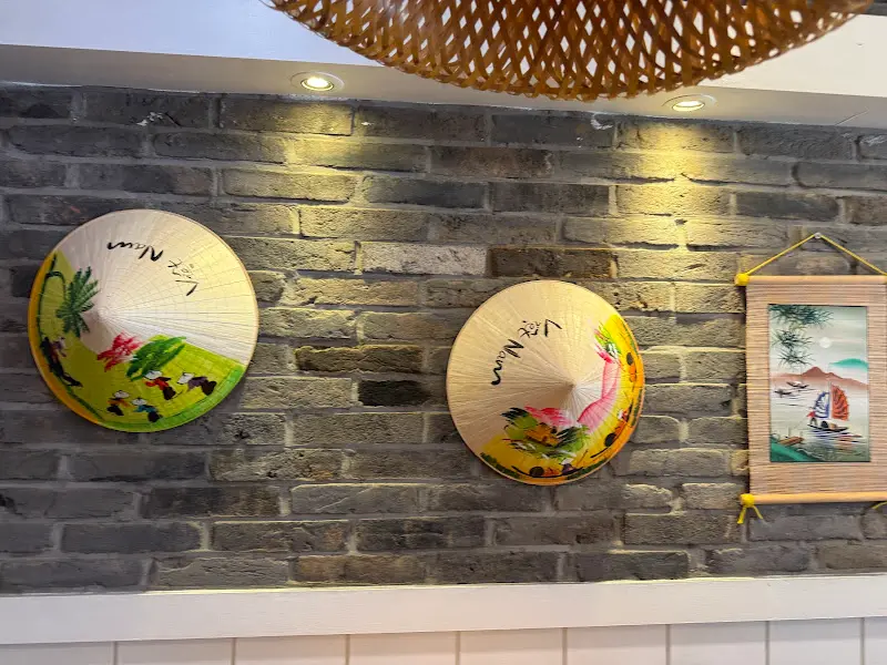매장 문을 열자, 아늑하면서도 깔끔한 분위기가 나를 반겼다. 은은한 조명 아래, 베트남 전통 모자인 ‘농’이 벽에 걸려 있는 모습이 인상적이었다. 마치 작은 베트남에 온 듯한 느낌이랄까. 혼자 온 손님을 위한 카운터석도 마련되어 있어 부담 없이 자리를 잡을 수 있었다. 게다가 테이블마다 핸드폰 거치대까지 준비되어 있는 센스! 혼밥족을 위한 배려가 돋보였다. 직원분들도 친절하게 맞아주셔서 첫인상부터 기분이 좋았다.