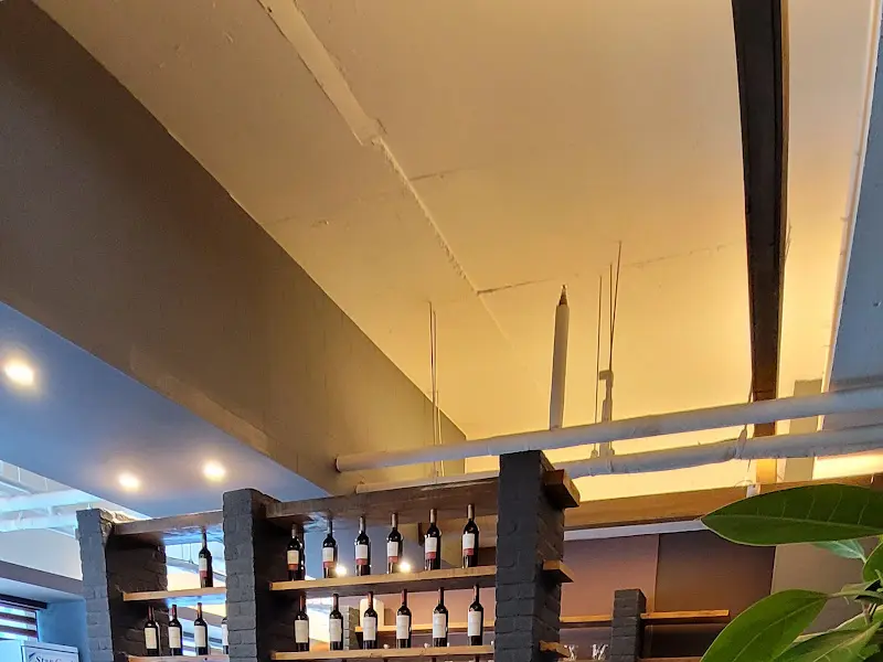 북촌화로의 천장과 조명, 와인 진열대가 보이는 인테리어