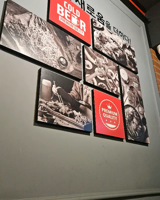 주문 후, 가게를 찬찬히 둘러봤다. 은은한 조명 아래, 나무 테이블과 의자가 따뜻한 분위기를 자아냈다. 혼자 온 손님들을 위한 배려인지, 벽 쪽에는 나란히 앉을 수 있는 좌석도 마련되어 있었다. 다음에는 저 자리에 앉아봐야지, 속으로 다짐했다. 벽면에는 ‘COLD BEER PREMIUM QUALITY’라는 문구와 함께 치킨과 맥주 사진들이 걸려있었는데, 저절로 맥주 생각이 났다. 다음에는 꼭 치맥을 즐기리라!