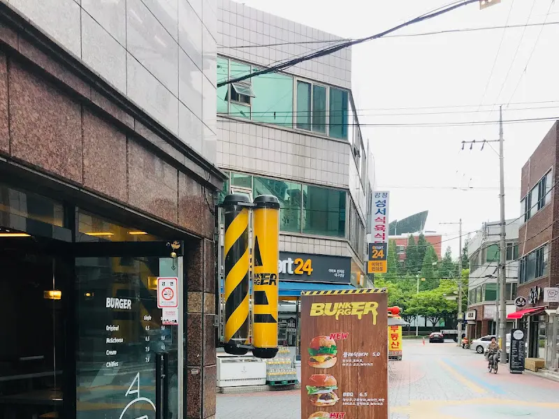 벙커버거를 찾아가는 길은 생각보다 쉬웠다. 계명대학교 동문에서 멀지 않은 골목 안쪽에 자리 잡고 있었는데, 노란색과 검은색 줄무늬가 칠해진 기둥 덕분에 멀리서도 눈에 띄었다. 마치 비밀기지 입구 같은 느낌이랄까? 가게 앞에 세워진 입간판에는 큼지막한 버거 사진들이 침샘을 자극했다. 드디어 맛집 도착!