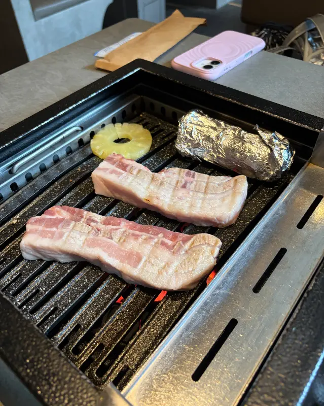 제일 먼저 맛본 건 삼겹살. 육즙이 팡팡 터지는 삼겹살의 풍미는 정말 최고였다. 겉은 바삭하고 속은 촉촉한 완벽한 조화. 괜히 고기 질이 좋다는 평이 많은 게 아니었다. 잡내 하나 없이 깔끔한 맛이 일품이었다.