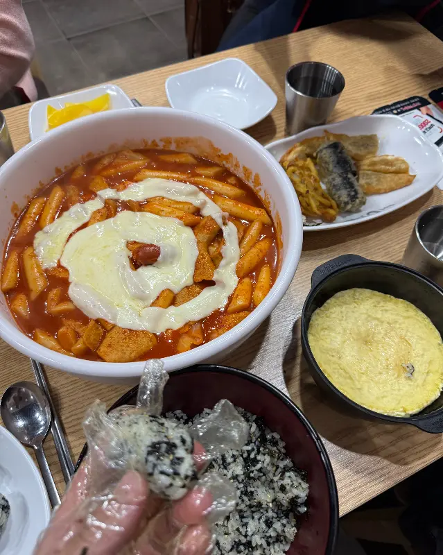 자리에 앉아 메뉴판을 정독했다. 엽떡, 엽오, 반반 엽떡… 종류도 다양하다. 혼자 왔으니 2인 엽떡을 시켜야 하나 고민했는데, 다행히 1인분 메뉴도 판매하고 있었다. 엽떡 초보 맛부터 오리지널, 매운맛까지 맵기 조절도 가능! 맵찔이인 나는 덜 매운맛으로 조심스럽게 주문했다. 혹시 몰라 주먹김밥도 추가했다. 매운맛을 중화시켜줄 든든한 지원군이 필요하니까.