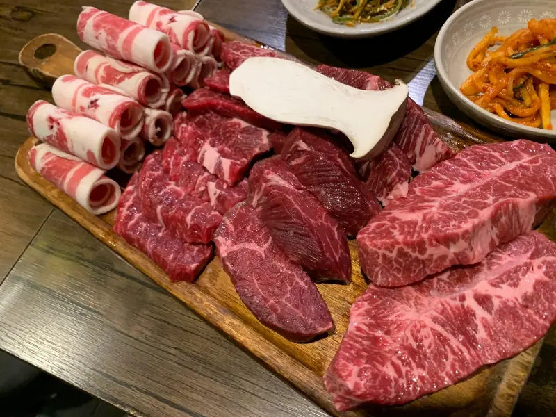 메뉴판을 찬찬히 살펴보니, 다양한 부위의 한우를 맛볼 수 있는 세트 메뉴들이 눈에 띄었다. 혼자 왔으니, 여러 가지를 맛보기보다는 가장 끌리는 부위를 집중 공략하기로 결정했다. 고심 끝에 우삼겹과 토시살을 주문했다. 그리고 빼놓을 수 없는 한우육회비빔밥도 함께! 혼자서 이 정도는 거뜬하잖아?