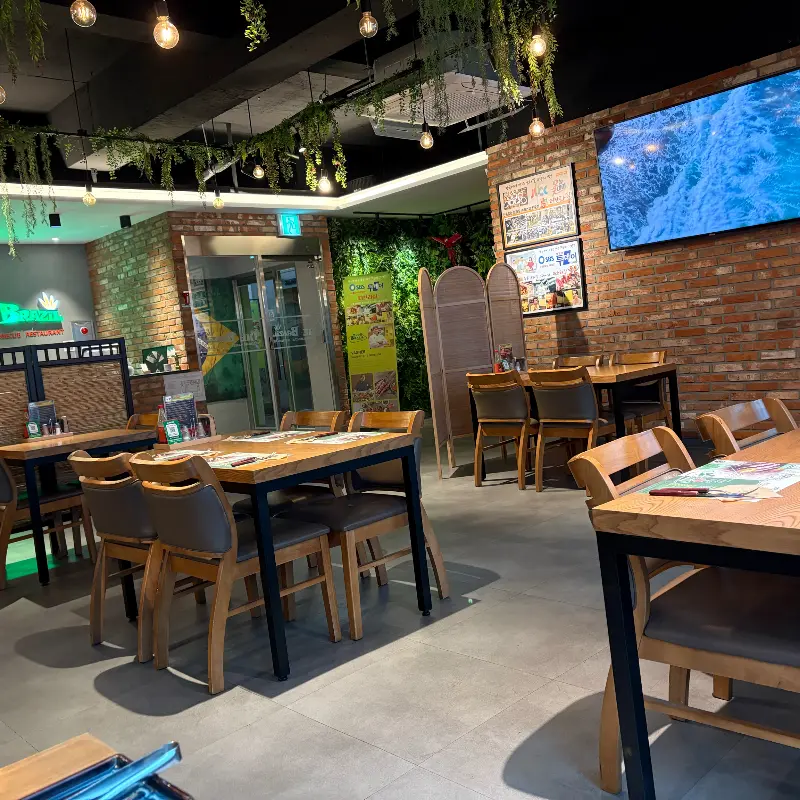 문을 열고 들어서자, 마치 다른 세계에 온 듯한 이국적인 분위기가 나를 맞이했다. 붉은 벽돌과 초록 식물로 꾸며진 인테리어는 브라질의 정열과 자연을 동시에 느낄 수 있게 해주었다. 은은하게 울려 퍼지는 브라질 음악은 식사하는 내내 흥겨움을 더했다. 혼자 왔지만 전혀 어색하지 않았다. 오히려 매장이 넓어서 테이블 간 간격이 넓어 편안하게 식사를 즐길 수 있었다. 혼자 조용히 음식을 음미하고 싶은 사람에게는 최적의 장소라는 생각이 들었다.