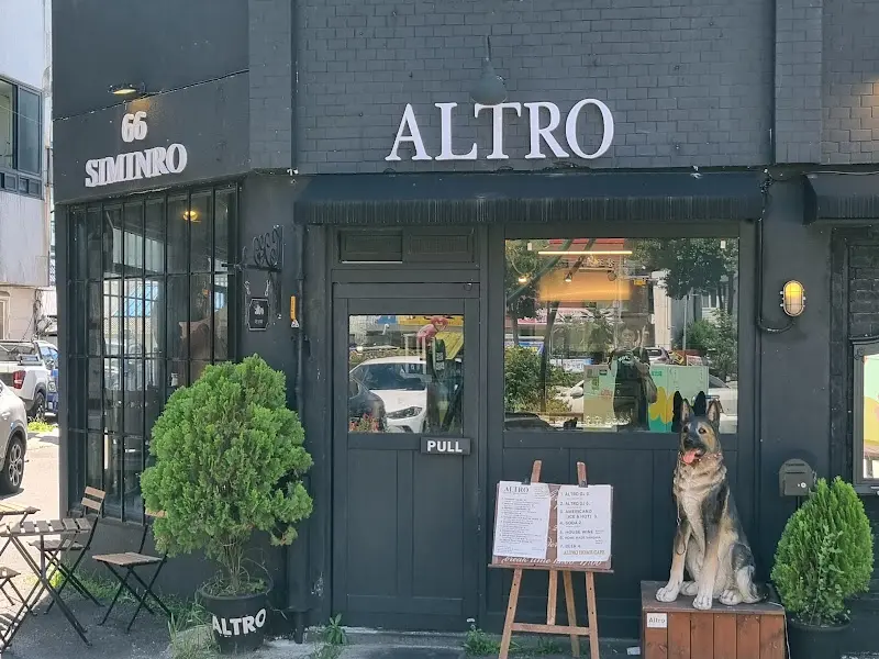 레스토랑에 가까워질수록 묘한 설렘이 느껴졌다. 검은색 외관에 흰색으로 큼지막하게 쓰여진 ‘ALTRO’라는 글자가 눈에 띄었다. 가게 앞에 놓인 늠름한 셰퍼드 동상이 방문객을 맞이하는 모습이 인상적이다. 마치 유럽의 어느 골목길에서 발견한 듯한, 앤티크한 분위기가 물씬 풍기는 외관이었다. 문을 열고 들어서자, 바깥과는 또 다른 세상이 펼쳐졌다.