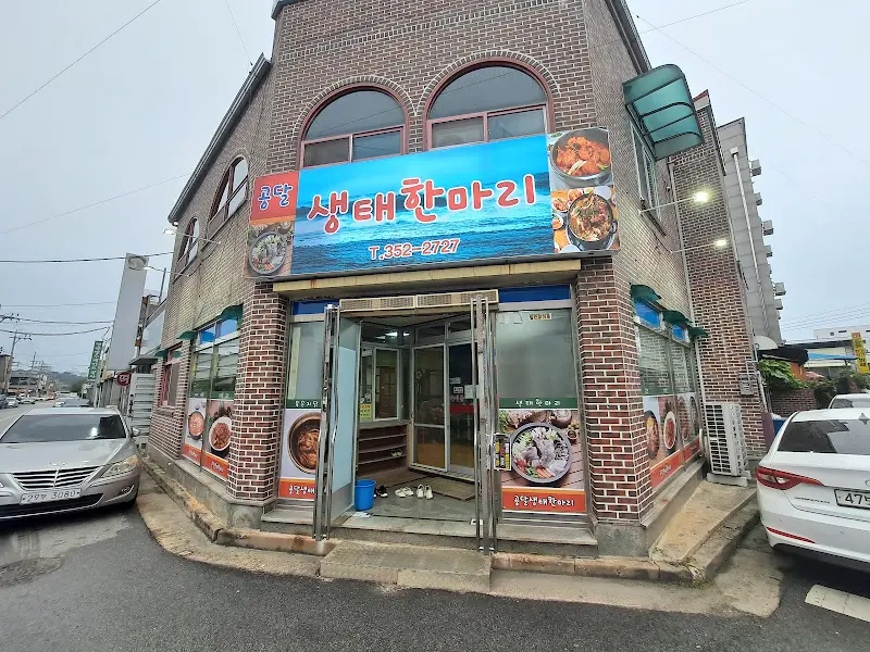 네비게이션이 가리키는 곳으로 향하다 보니, 붉은 벽돌 건물이 눈에 들어왔다. ‘생태한마리’라는 간판이 파란 하늘과 대비되어 더욱 선명하게 보였다. 간판에는 생태탕 사진이 함께 걸려있어, 나의 기대감을 한층 더 고조시켰다. 건물 외벽에는 메뉴 사진들이 큼지막하게 붙어있어, 지나가는 사람들의 발길을 붙잡는 듯했다.