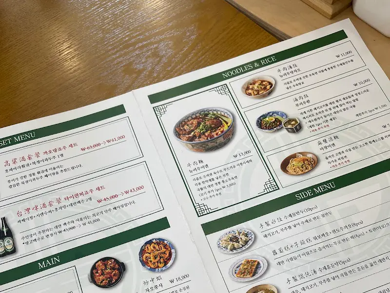 문을 열자, 쾌적하면서도 아늑한 공간이 눈에 들어왔다. 은은한 조명 아래 나무 테이블들이 놓여 있고, 벽에는 대만 풍경 사진과 아기자기한 소품들이 걸려 있어 마치 대만에 온 듯한 기분이 들었다. 테이블에 놓인 메뉴판을 펼쳐보니, 막창파구이, 마라두부, 우육탕면 등 평소에 접하기 힘든 메뉴들이 가득했다. 뭘 먹어야 할지 한참을 고민하다가, 사장님께 추천을 받아 홍싸오러우(족발요리), 뉴러우미엔(우육면), 그리고 수제 쉐이쟈오(물만두)를 주문했다.