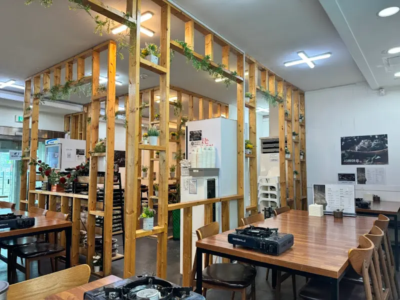 네비게이션이 안내하는 대로 따라갔지만, 마지막 코너에서 길을 놓치고 말았다. 눈앞에 뻔히 보이는 식당을 두고 10분 넘게 헤매는 당황스러움이란! 마치 숨겨진 보물을 찾아 떠나는 모험 같은 기분마저 들었다. 드디어 도착한 시래마루는 생각보다 넓은 주차장을 갖추고 있었다. 주차를 하고 식당 안으로 들어서니, 나무를 격자 모양으로 엮어 만든 칸막이가 눈에 띄었다. 칸막이 위에는 작은 화분들이 놓여 있어, 마치 정원에 온 듯한 싱그러운 느낌을 주었다. 테이블 간 간격도 넓어서 편안하게 식사를 즐길 수 있을 것 같았다.