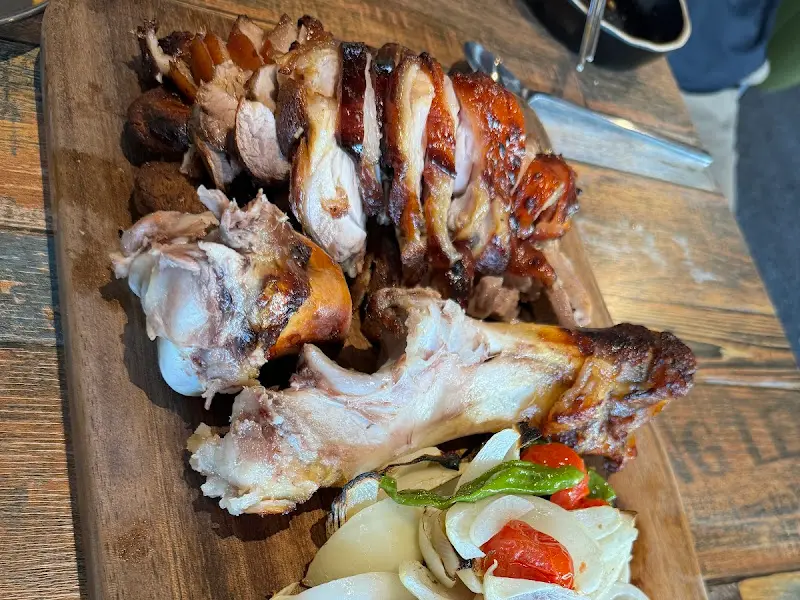 드디어 기다리고 기다리던 화덕 족발이 모습을 드러냈다. 나무 도마 위에 윤기가 자르르 흐르는 족발이 가지런히 놓여 있었고, 그 옆에는 구운 채소들이 함께 플레이팅 되어 있었다. 족발 껍데기는 황금빛 갈색으로 먹음직스럽게 구워져 있었고, 살코기는 촉촉함을 그대로 머금고 있었다.