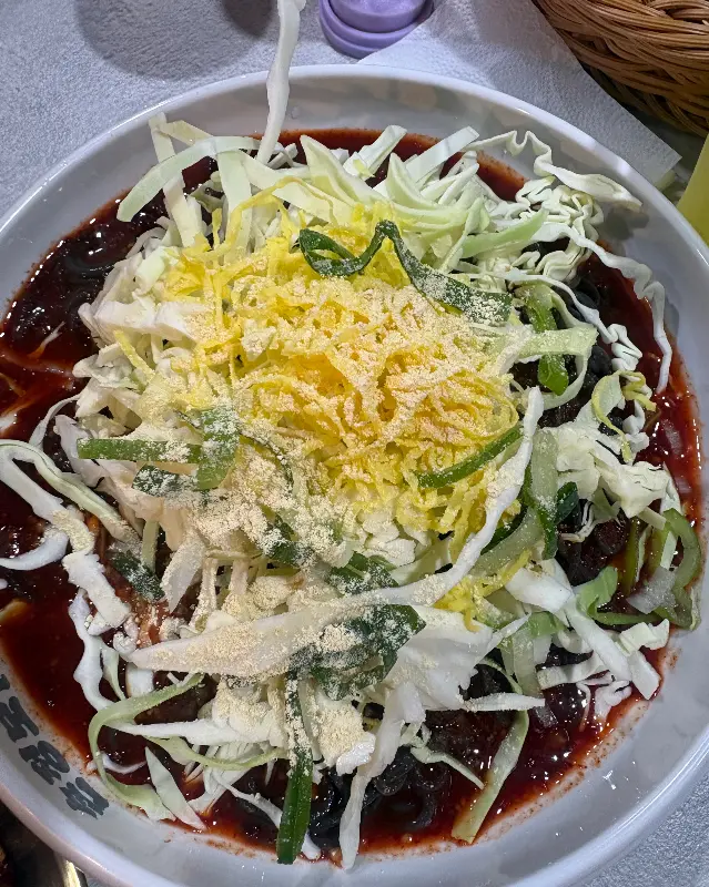 잠시 후, 드디어 기다리고 기다리던 ‘가브리 김치보쌈’이 테이블 위에 모습을 드러냈다. 접시에 담긴 보쌈의 자태는 마치 예술 작품과도 같았다. 윤기가 자르르 흐르는 얇게 썰린 가브리살, 먹음직스럽게 양념된 김치, 그리고 싱싱한 배추가 조화롭게 어우러져 있었다. 마치 잘 설계된 분자 모형을 보는 듯한 느낌이랄까.