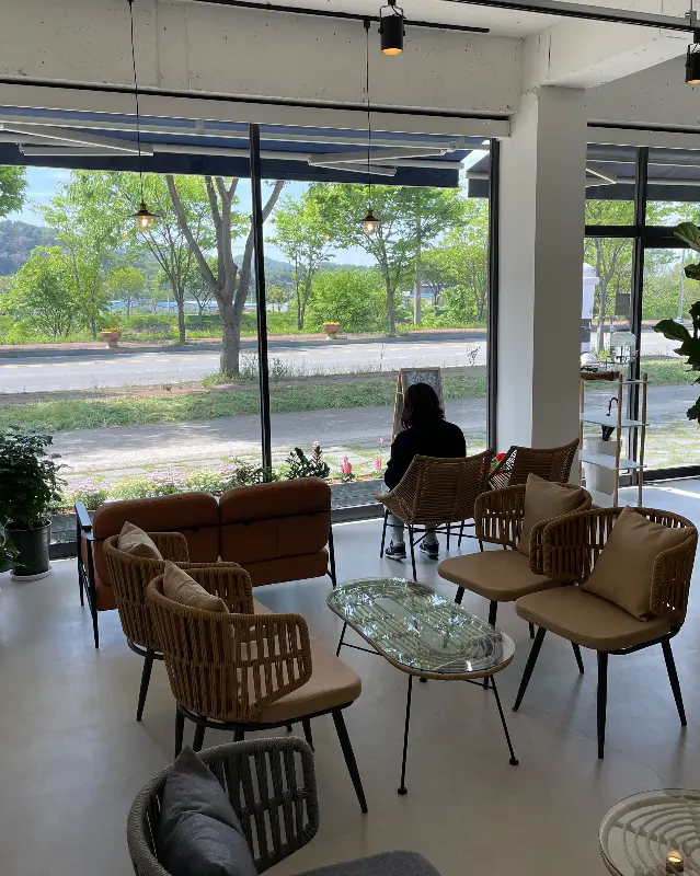 카페에 들어서자마자 눈에 띈 건 넓찍한 주차장이었어요. 운전하는 사람들은 다 알잖아요, 주차 공간 넉넉한 곳이 얼마나 귀한지! 게다가 통유리창 너머로 보이는 풍경이 어찌나 시원한지. 마음까지 탁 트이는 기분이었어요. 도심에서는 느껴볼 수 없는 여유로움이랄까요.