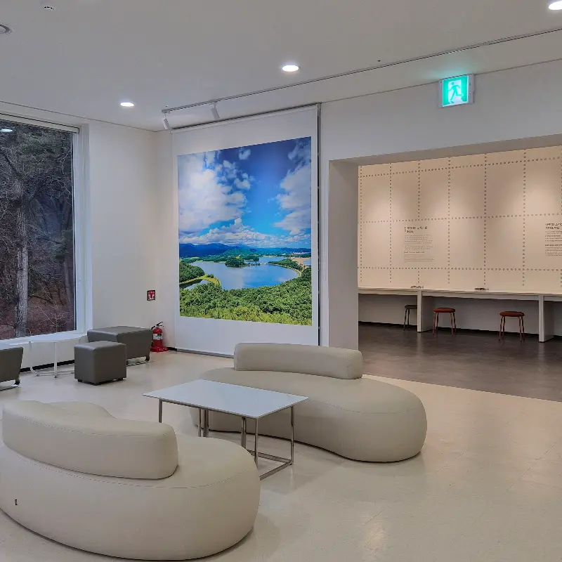 주문한 메뉴가 나오기 전에 카페 내부를 둘러보았다. 한쪽 벽면에는 화진포의 아름다운 사계절 풍경 사진들이 걸려 있었다. 사진을 감상하며 화진포의 역사와 문화에 대해 더욱 깊이 이해할 수 있었다. 창가 자리에는 이미 많은 사람들이 자리를 잡고 앉아 풍경을 감상하고 있었다. 다들 얼굴에 미소를 머금고 있는 모습이 참 평화로워 보였다.
