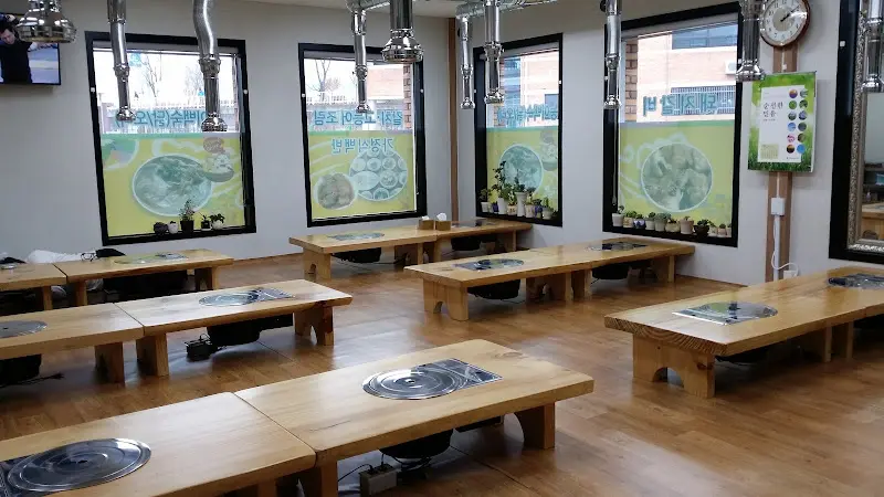 가게 문을 열고 들어서자, 넓고 깔끔한 홀이 눈에 들어왔다. 테이블 간 간격이 넉넉하게 배치되어 있어 편안하게 식사를 즐길 수 있는 분위기였다. 나무로 된 테이블과 은은한 조명은 따뜻하고 안정적인 느낌을 더했다. 커다란 창밖으로는 화천의 정겨운 풍경이 펼쳐져, 마치 고향집에 온 듯한 편안함을 느낄 수 있었다. 과 에서 보이는 넓고 정돈된 공간은 단체 손님을 맞이하기에도 충분해 보였다.