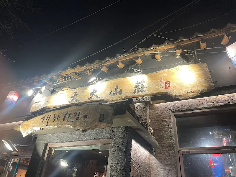 어스름이 내려앉은 경주의 밤거리는 낮과는 또 다른 매력을 풍겼다. 은은한 조명이 고즈넉한 한옥 지붕을 비추고, 좁은 골목길 사이로 맛있는 냄새가 코를 간지럽혔다. 드디어 목적지에 도착했다. ‘대화화산숯’, 큼지막한 나무 간판에 쓰인 붓글씨가 이곳의 깊은 역사를 짐작하게 했다.