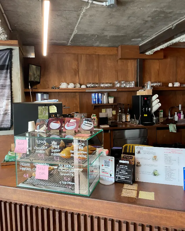 카페에 들어서자, 따스한 햇살이 통창을 통해 쏟아져 들어왔다. 콘크리트와 우드가 조화롭게 어우러진 인테리어는 편안하면서도 세련된 느낌을 자아냈다. 마치 오래된 친구의 아늑한 작업실에 초대받은 듯한 기분이었다. 은은하게 퍼지는 커피 향은, 바다 내음과 묘하게 어우러져 잊을 수 없는 첫인상을 남겼다.