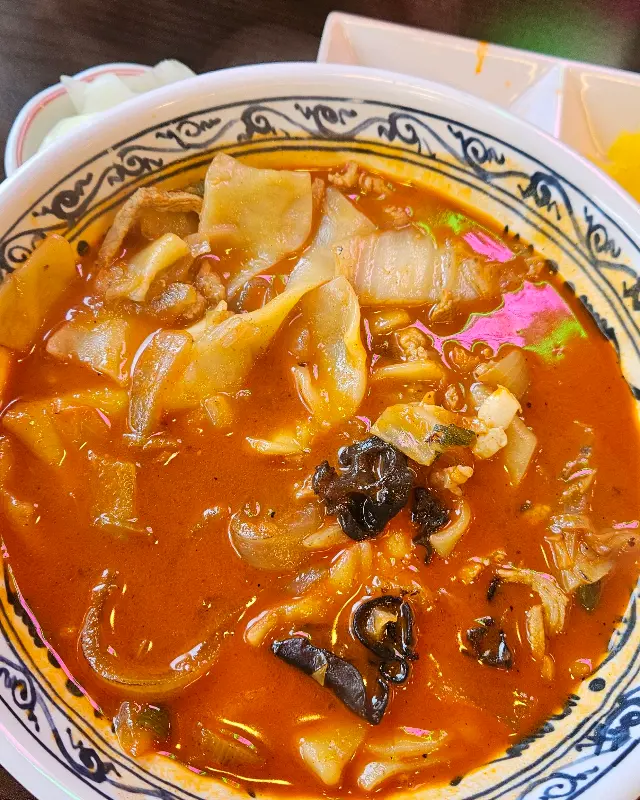 드디어 주문한 짬뽕 등장! 붉은 국물 위로 신선한 해산물과 야채가 듬뿍 올라가 있어. 사진으로 봤을 때보다 훨씬 푸짐한 양에 일단 합격. 국물 한 입 들이키니, Yo! 칼칼하면서도 깊은 맛이 내 영혼을 강타하는 기분. 이 맛은 레전드, 내 혀가 센드! 면발도 탱글탱글 살아있어서 후루룩 넘어가는 식감이 예술이야.
