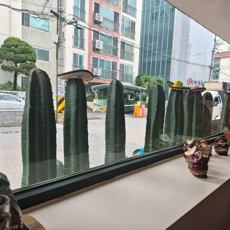 특히 창가 자리에 놓인 선인장들은 멕시코의 정취를 더해줘, 마치 내가 멕시코에 와있는 듯한 착각마저 들게 해.