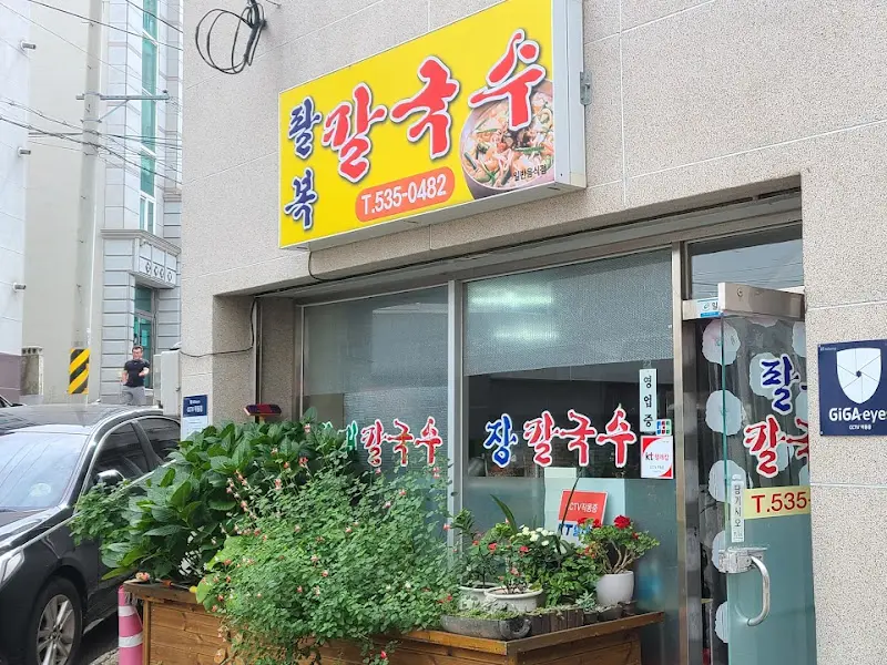 샛노란 바탕에 큼지막한 글씨, “황** 칼국수”,