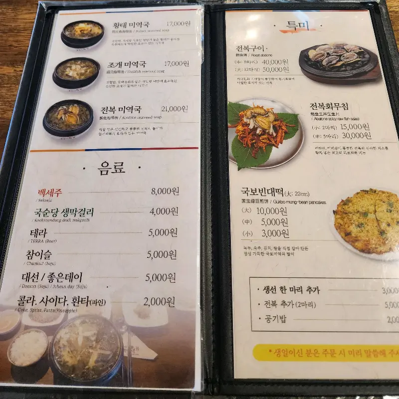 자리에 앉아 메뉴판을 스캔하니, 미역국 종류만 해도 다양해.