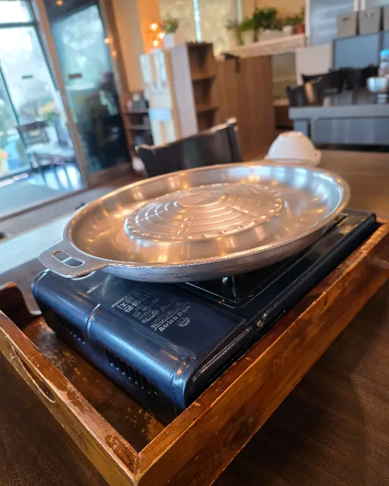 식당에 들어서자마자 느껴지는 따뜻하고 정겨운 분위기는 이미 실험의 절반은 성공한 듯한 예감을 주었다. 복잡한 메뉴판 대신, 오직 ‘불고기’와 ‘쌈밥’에 집중한 이곳의 철학은 분명했다. 테이블 위에는 묵직한 불고기 전골 냄비와 휴대용 가스레인지가 놓여 있었다. 짙은 갈색 톤의 테이블과 은은한 조명은 오랜 세월의 깊이를 더하는 듯했다.
