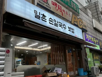 며칠 전부터 칼국수가 어찌나 땡기던지… 드디어 칼퇴하고 구미로 달려갔다! 오늘 나의 레이더망에 포착된 곳은 바로 밀촌손칼국수! 간판부터가…