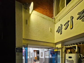 어스름한 저녁, 조치원 골목길을 헤매다 발견한 석기정. 낡은 기와지붕 아래 희미하게 빛나는 간판 불빛은 마치 어린 시절…