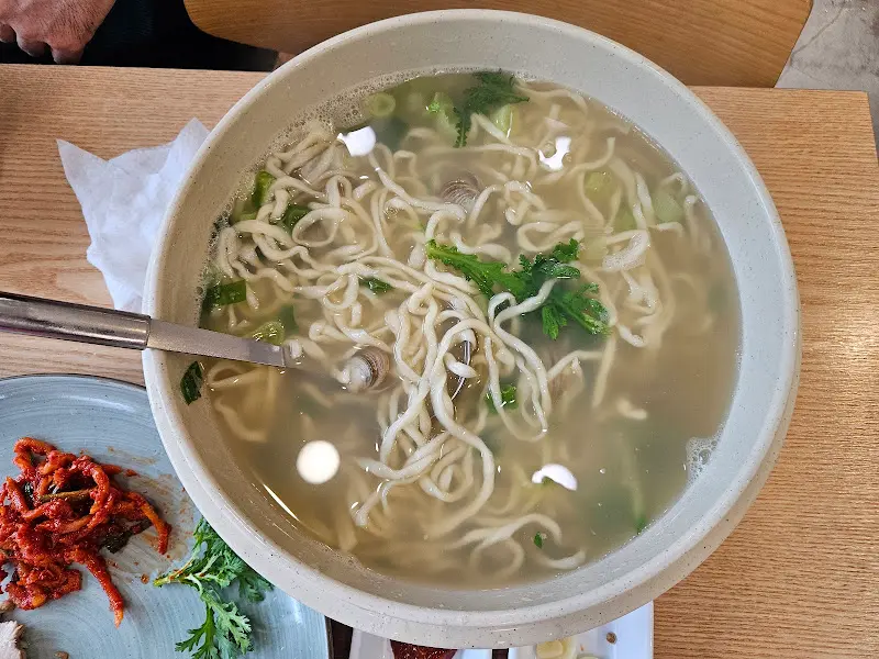 면발은 쫄깃쫄깃하고, 물총조개는 톡톡 터지는 식감이 일품이었다. 특히 물총조개는 해감이 잘 되어 있어, 모래 씹히는 불쾌감 없이 맛있게 먹을 수 있었다. 면과 조개를 함께 먹으니, 그 조화가 정말 환상적이었다. 칼국수 국물이 면에 잘 배어들어, 먹을수록 감칠맛이 났다.